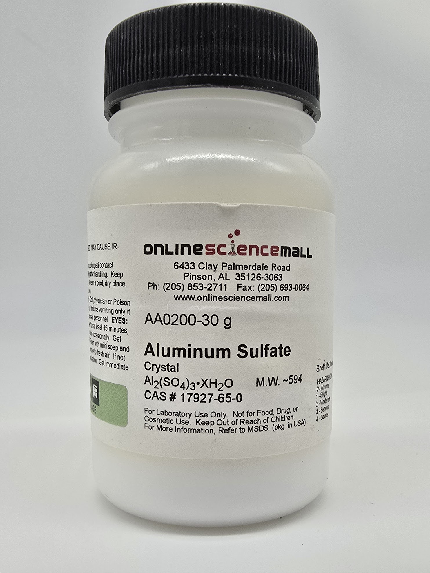Aluminum sulfate (Al₂(SO₄)₃), a versatile chemical compound widely used for water treatment, pH adjustment, paper manufacturing, and dye fixing in textiles. Often employed as a coagulant in municipal and industrial water purification processes and as a mordant in fabric dyeing. Packaged for laboratory, industrial, and educational use—handle with appropriate safety precautions.