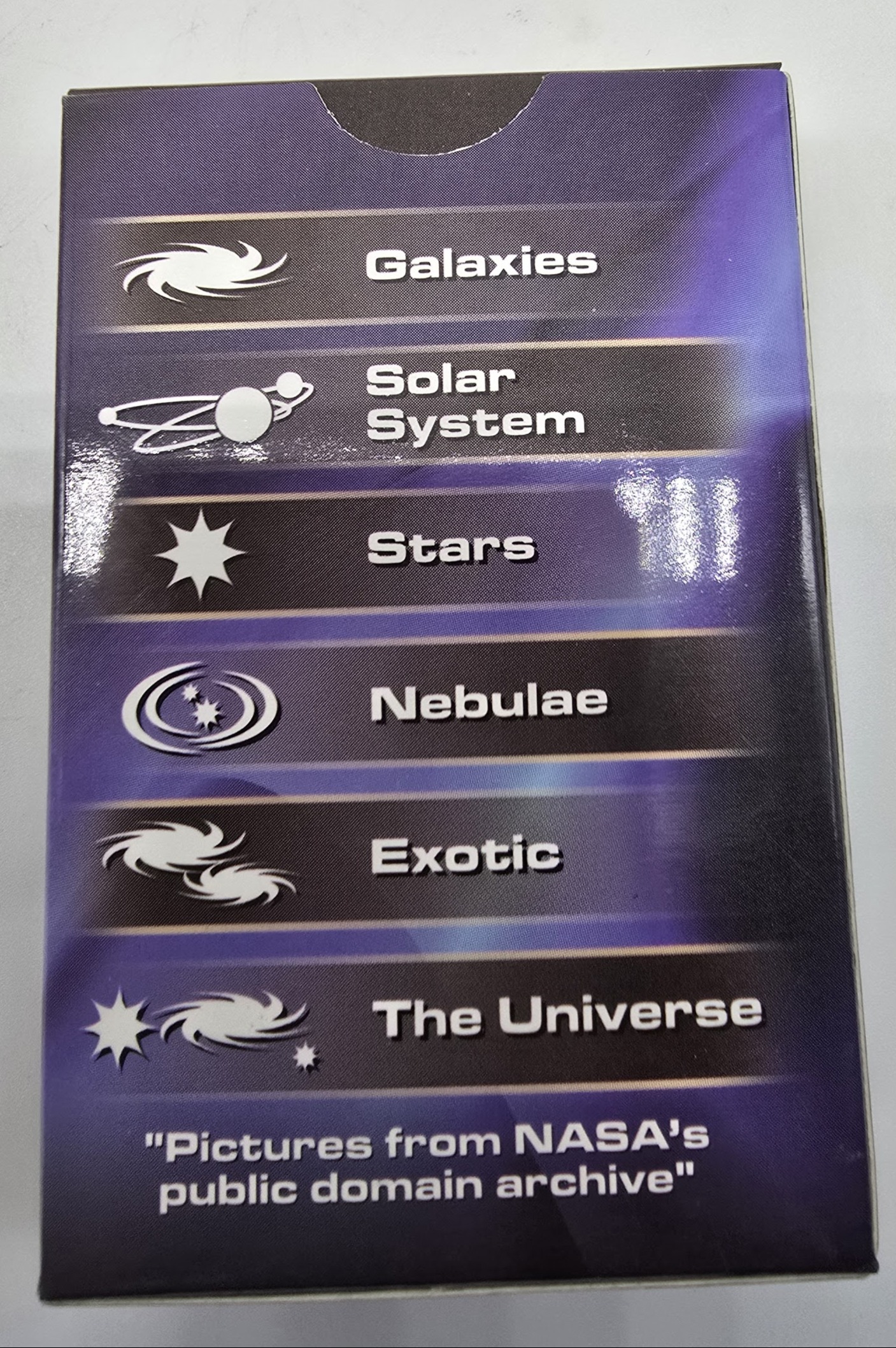 Explore the universe one shuffle at a time with this Syn Heme Astronomy Playing Cards set. Each deck is filled with stunning space-themed designs featuring planets, stars, galaxies, and other celestial wonders. Perfect for astronomy enthusiasts, students, and card players alike, these decks combine beautiful artwork with practical playability. The pack includes two complete decks, making it ideal for group games, travel, or gifting to the stargazer in your life. Durable and portable, they’re ready for both game night and cosmic inspiration.