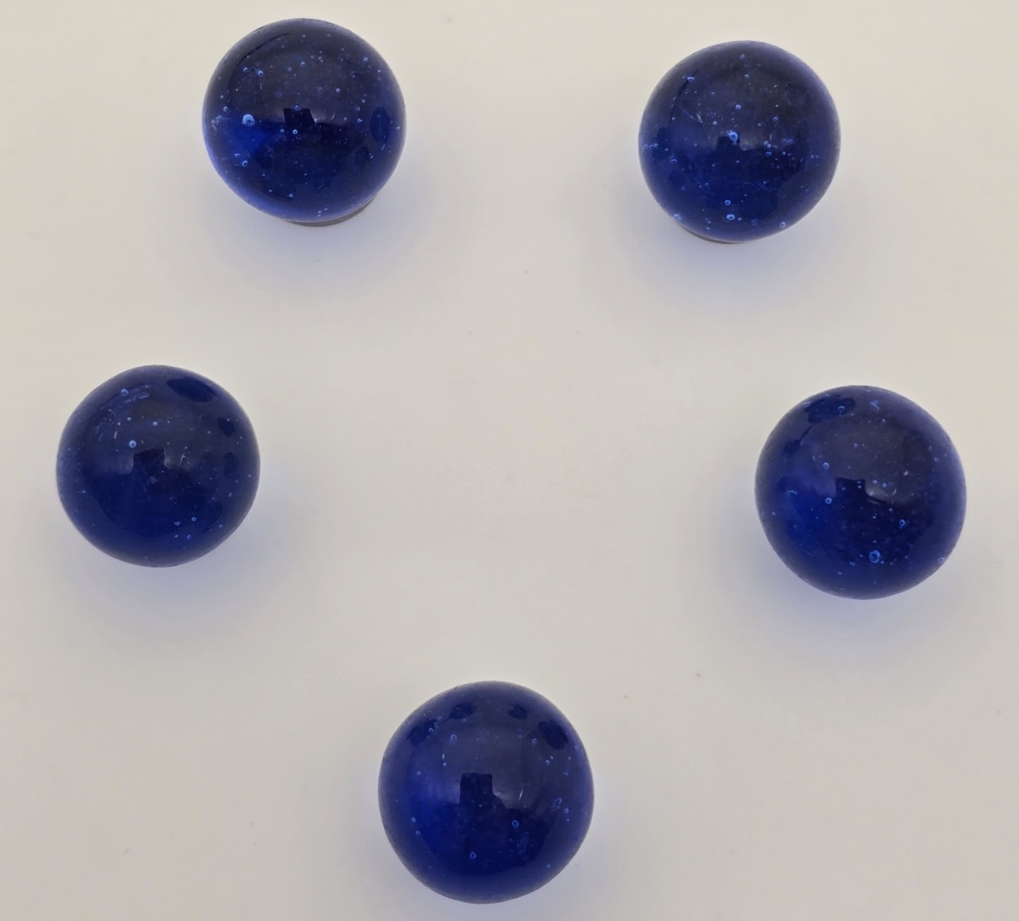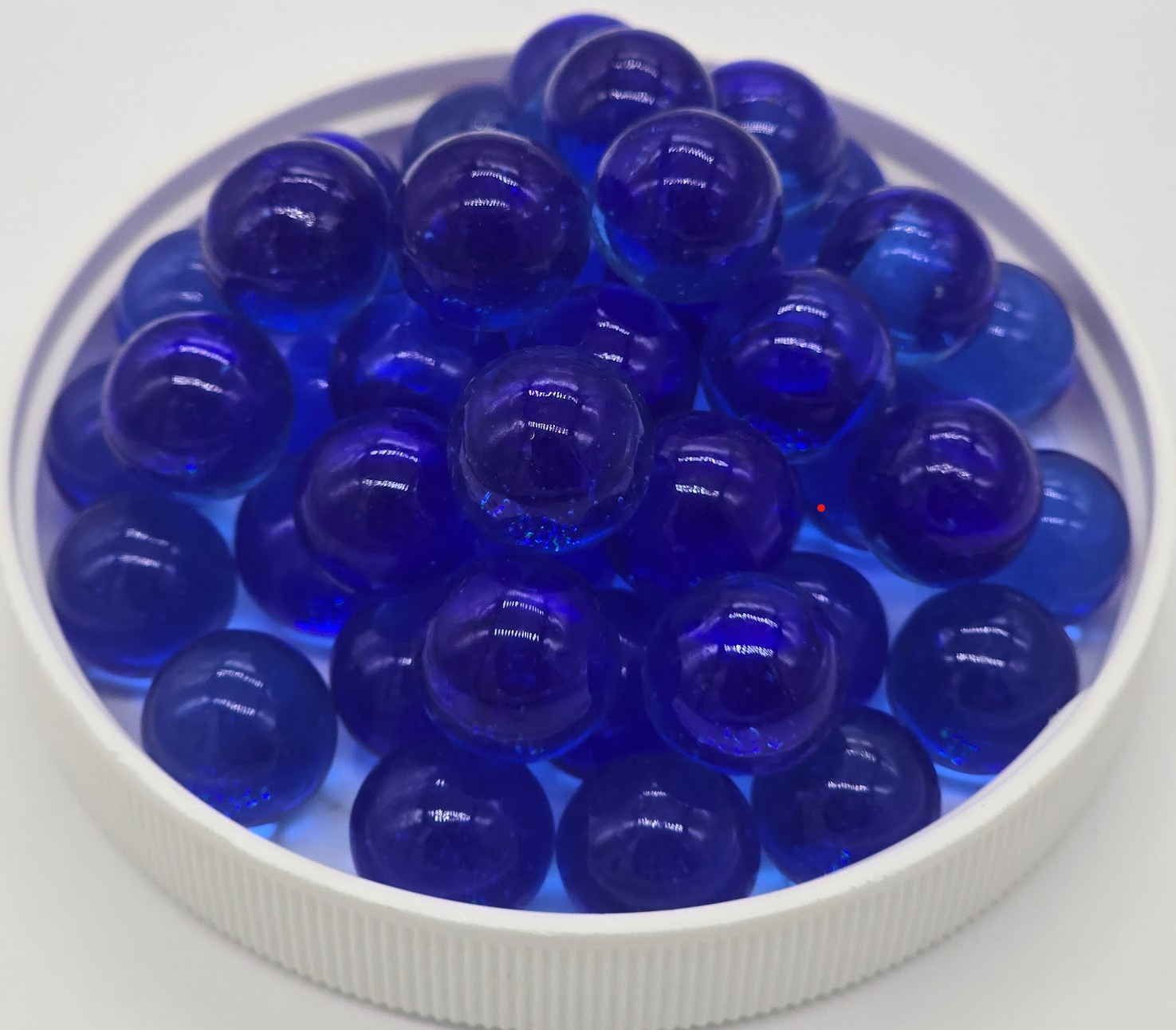 These stunningly, lovely, 14mm “Cobalt Blue” marbles come in packs of 25. Made of Cobalt Blue, translucent glass, the color changes slightly in different light. The pictures do not do justice to these marbles. These .55 inch collectible marbles will surely create a conversation whenever used or placed on display!
