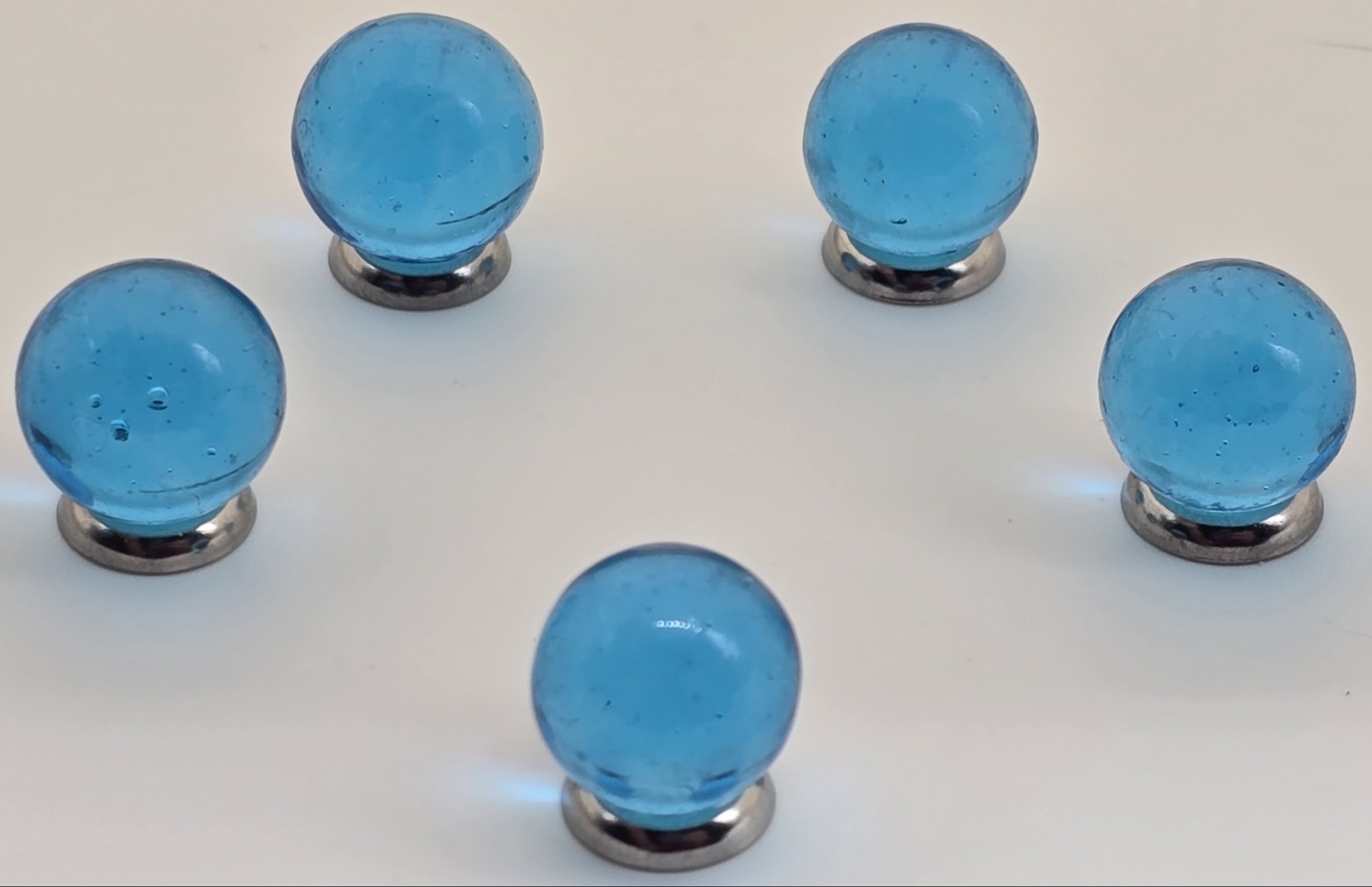 These stunningly, lovely, 14mm “Ice Blue” marbles come in packs of 5. Made of Ice Blue, translucent glass, the color changes slightly in different light. The pictures do not do justice to these marbles. These .55 inch collectible marbles will surely create a conversation whenever used or placed on display!